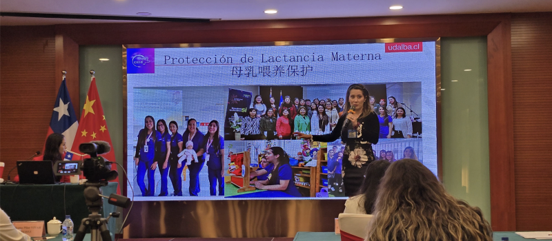 En la ocasión, la académica e integrante del Grupo Erasmus+ Cielo y del Núcleo de Investigación en Nutrición y Obesidad (NINO), contó detalles de la experiencia del proyecto JIALMA (Jardines Amigos de la Lactancia Materna), que impulsa la educación, el acompañamiento y la creación de entornos favorables para las madres y sus familias, integrando a estudiantes, académicos e instituciones públicas.
