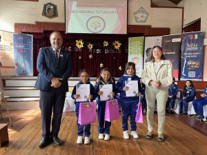 Como parte del cierre de la ceremonia, se realizó un reconocimiento especial a mediadoras destacadas por su compromiso y trayectoria. Entre ellas, Anelly Orellana, estudiante de octavo básico que formó parte del programa desde 2023; Victoria Julio, de tan solo 5 años, por su temprana apropiación del rol de mediadora; y Florencia Contreras, estudiante de séptimo básico, por su activa y constante participación en las instancias de formación.