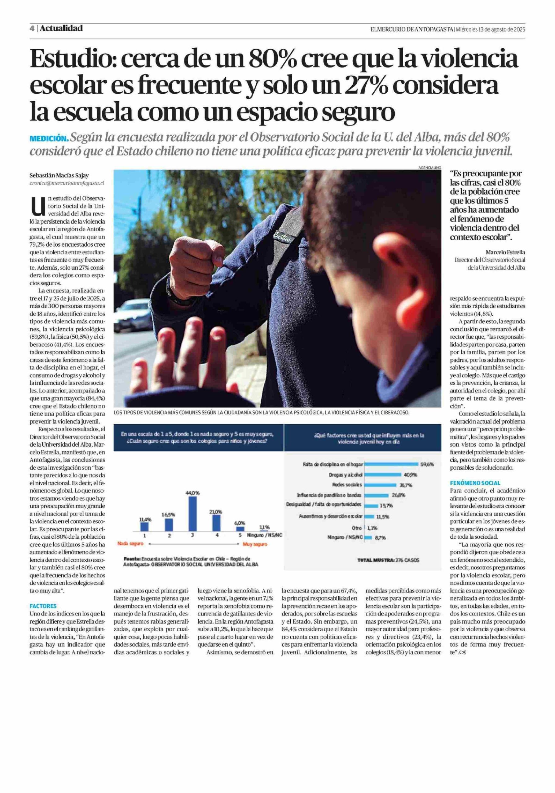Estudio: cerca de un 80% cree que la violencia escolar es frecuente y solo un 27% considera la escuela como un espacio seguro
