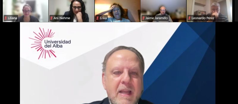 La actividad, realizada de manera online, reunió a más de 180 participantes y estuvo encabezada por Rafael Rosell Aiquel, rector de la U. del Alba; Cristián Monckeberg Bruner, decano de la Facultad de Ciencias Sociales y Humanidades, y Aniza Nehme, Product Manager de Beneficios Sociales Pensionados de Caja Los Andes.