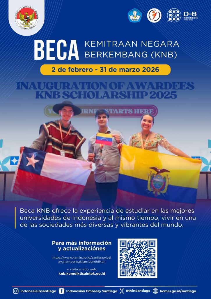 La Universidad del Alba, a través de la Dirección General de Internacionalización, extiende la invitación de la Embajada de la República de Indonesia en Chile a participar en el Programa de Becas Kemitraan Negara Berkembang (KNB) para el año académico 2026.