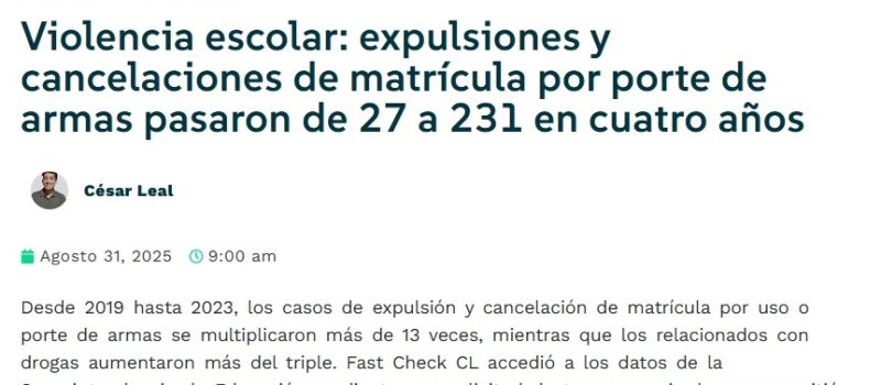 Violencia escolar: expulsiones y cancelaciones de matrícula por porte de armas pasaron de 27 a 231 en cuatro años